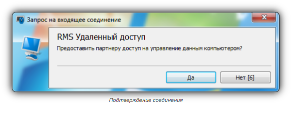 Когда данная функция включена, программа показывает удаленному пользователю сообщение с запросом на доступ к данному удаленному ПК. Удаленный пользователь может принять или отвергнуть запрос на соединение. В настройках можно указать промежуток времени, через который запрос будет автоматически отвергнут или принят, также можно запретить отображение запроса, если в момент соединения с удаленным ПК не работает интерактивный пользователь.