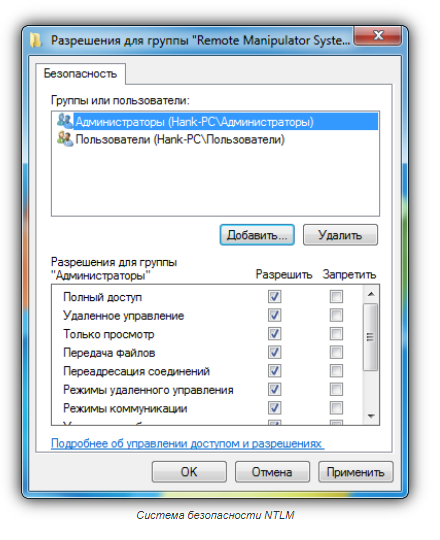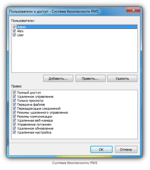 RMS предоставляет возможность разграничивать права удаленного доступа к удаленному компьютеру по режимам и пользователям.