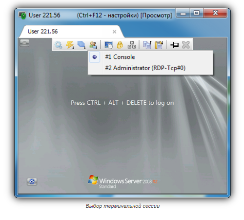 RMS позволяет управлять любой из терминальных сессий, запущенных на удаленном ПК. Если на удаленном компьютере запущено одновременно несколько сеансов, например, локальный и несколько RDP — можно выбрать интересующий сеанс и управлять им.