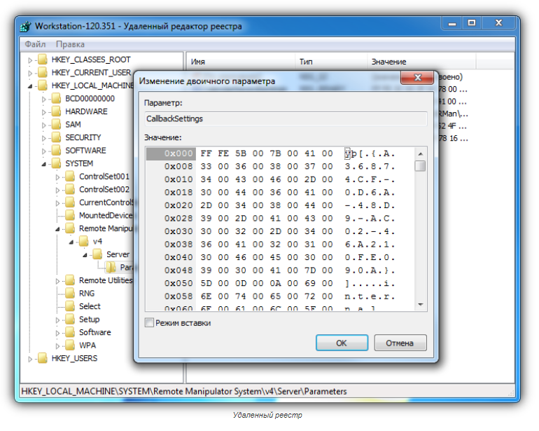 RMS Удаленный доступ — это программа, позволяющая осуществлять удаленное администрирование системного реестра. Главное окно режима «Удаленный реестр» очень похоже на привычный системный regedit.exe. Данный режим позволяет выполнять все основные операции с реестром, не отвлекая удаленного пользователя.