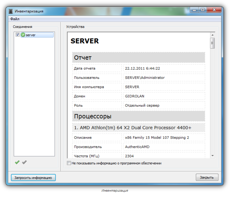 RMS имеет специальный инструмент, предназначенный для инвентаризации аппаратного и программного обеспечения удаленных компьютеров.
