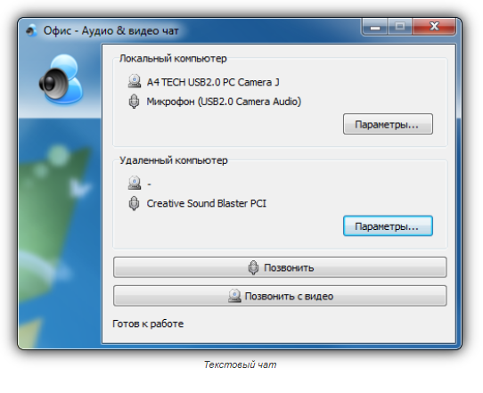 Администратор имеет возможность инициировать голосовой или видео чат с удаленным пользователем. Для этого на удаленном компьютере должен быть установлен микрофон и веб-камера. Данный режим напоминает сильно упрощенную версию программы Skype.