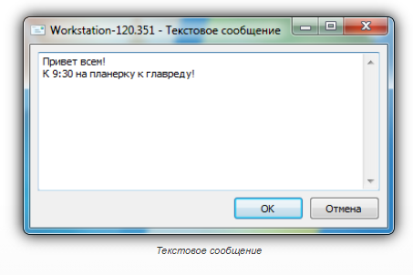 Функция «Текстовое сообщение» позволяет отправить на удаленный компьютер простой текст, который появляется на удаленном экране и привлекает внимание пользователя.
