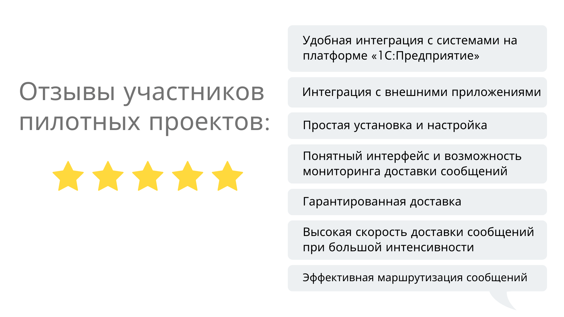 1С:Шина позволяет решить эти проблемы, перенаправляя все обмены через себя и предоставляя единую точку входа\выхода для всех информационных систем, а также единый инструмент управления и мониторинга.