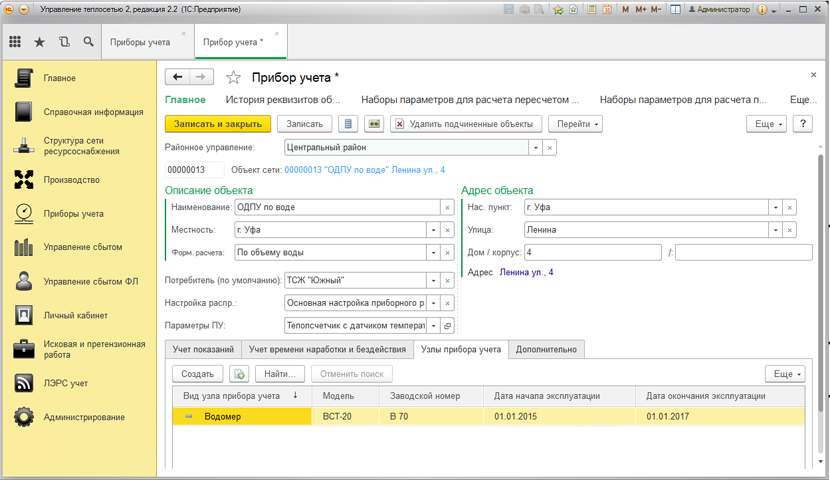 • Ввод и хранение информации по допускам в эксплуатацию приборов учета;