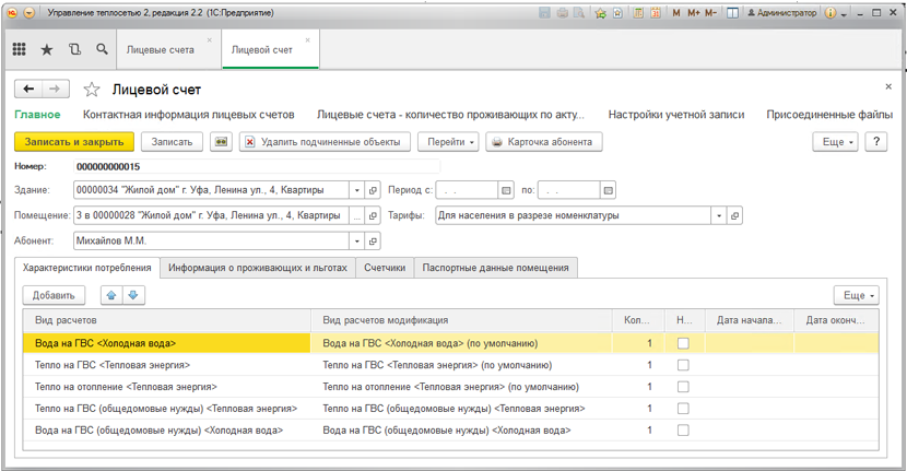 • Расчет потребления на ОДН по лицевым счетам с учетом площадей, занимаемых арендаторами и их потребленными услугами.