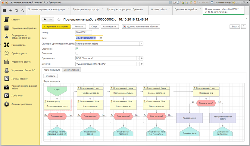 • Гибкая настройка системы ведения исковой и претензионной работы на базе механизма бизнес-процессов;