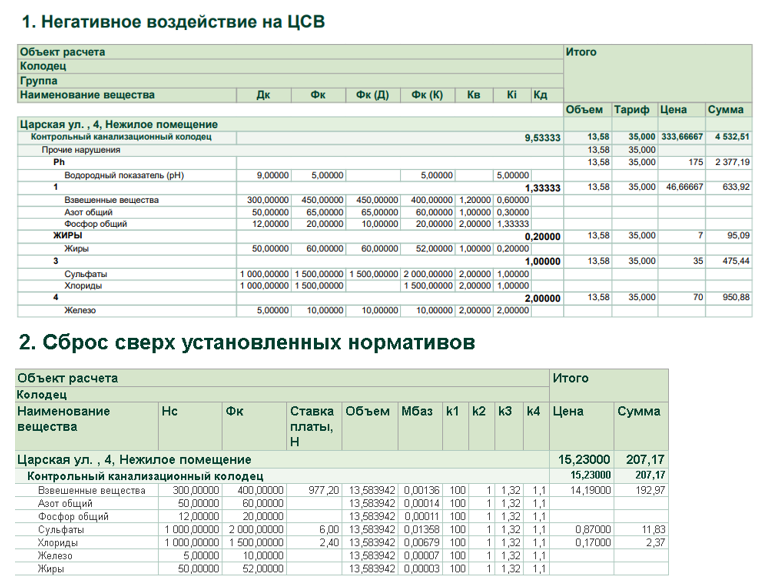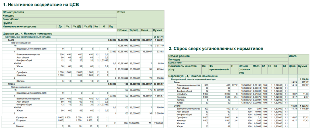 Расчет платы за негативное воздействие на систему водоотведения и сверхнормативные сбросы загрязняющих веществ в водные объекты.