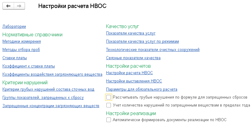 • Выполнение перерасчетов платы за НВОС и формирование корректировок ранее выполненных начислений за НВОС