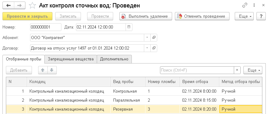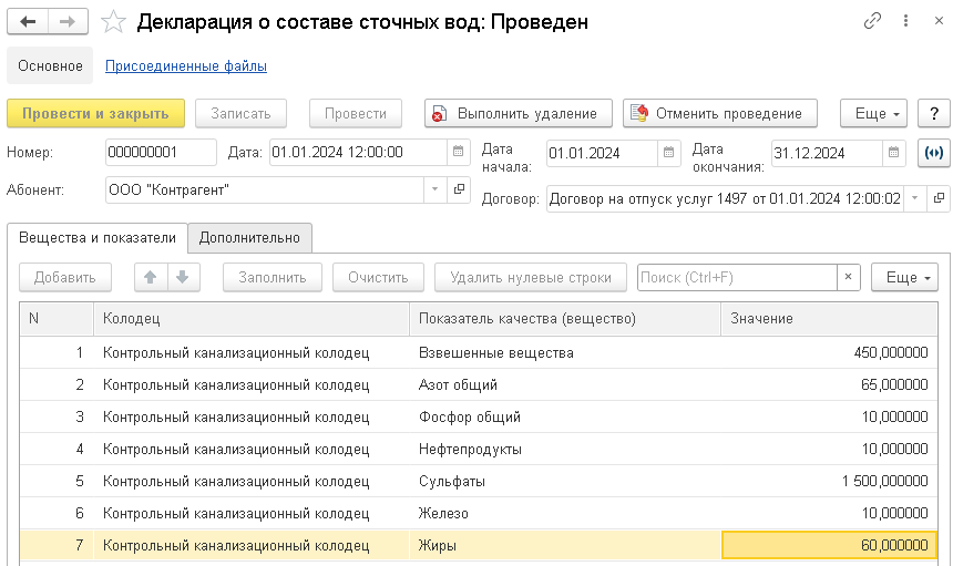• Учет данных о предоставленных Декларациях о составе сточных вод абонента