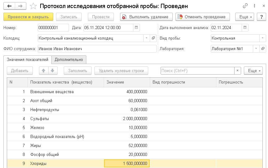 • Учет данных о контрольных пробах и результатах исследования отобранных проб в лабораториях