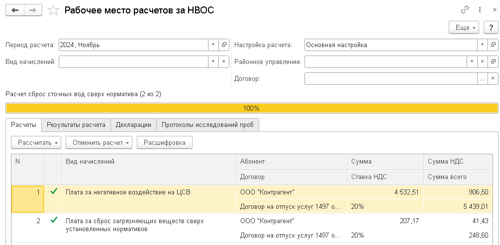 • Расчет платы за НВОС с учетом сведений о контрольных пробах и предоставленных Декларациях