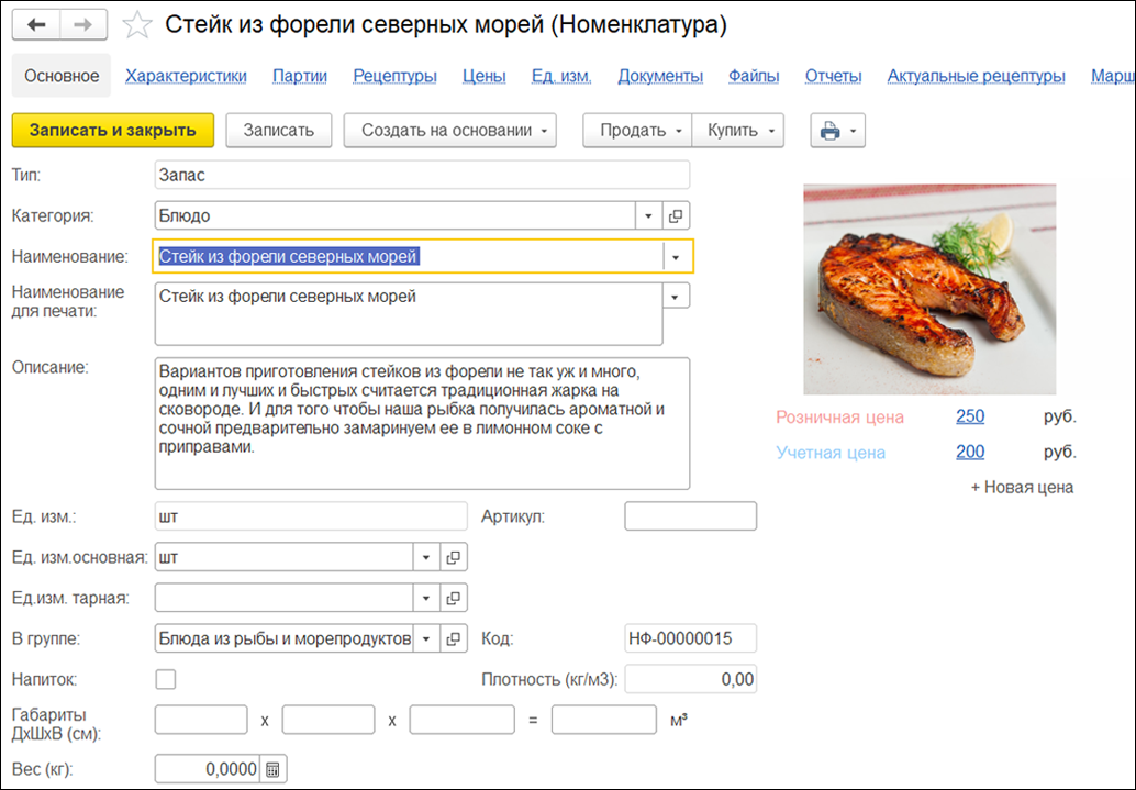 | ОТРАСЛЕВЫЕ ОСОБЕННОСТИ УЧЕТА НОМЕНКЛАТУРАНоменклатурный справочник, разработанный на управляемых формах, отражает всю отраслевую информацию по товарам, материалам, полуфабрикатам и блюдам. В нем задаются такие основные параметры, как срок годности, остатки на складах, информация о розничных и оптовых ценах, а также подгружается динамика продаж.
