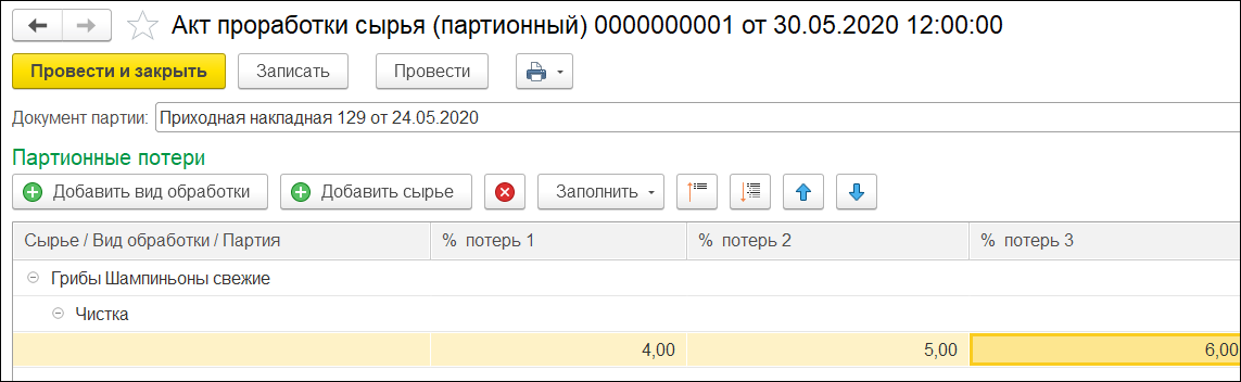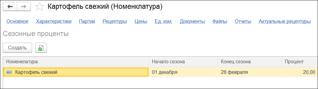 Контроль сроков годности и ведение учёта по партиям. При выпуске продукции автоматически рассчитывается срок её годности. При создании приходной накладной срок годности и тип даты проставляются автоматически. Автоподстановку срока годности и партии можно отключить. Учет потерь при обработке сырья. Для каждого ингредиента возможно указать отдельные правила обработки. В АРМ «Потери и обработки» можно не только задать потери для каждого ингредиента при конкретном типе обработки, но и увидеть потери в разрезе химико-энергетических характеристик. При фиксации данного параметра в рецептуре, все потери отобразятся в АРМ «Потери и обработки», но система всё равно оставит возможность для уточнения количества потерь и внесения своих изменений. Сезонные коэффициенты. Использование механизма сезонных коэффициентов позволяет учесть «плавающий» процент холодной обработки ингредиента в зависимости от сезона. Нет необходимости каждый раз заводить новую рецептуру.
